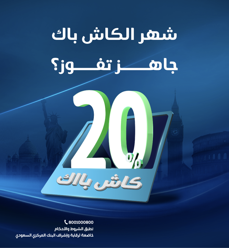 • سيتم إيداع الكاش باك في غضون 7 أيام عمل من انتهاء العرض بشرط أن تنطبق الشروط على الفائز.