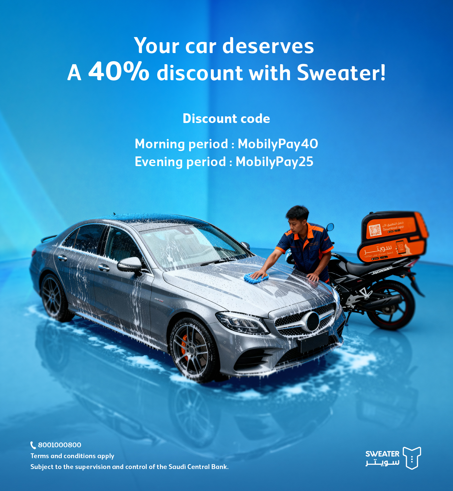 - 40% discount on single wash only from 9:00 AM to 2 PM when using promo code MobilyPay40